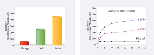 개요- 뛰어난 흡습 능력으로 실리카 겔등 기존 제품들보다 최대 80~90%까지 사용량 절감