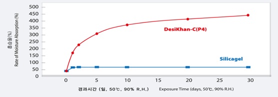 - 높은 흡습률, 빠른 흡습 속도, 우수한 지속성